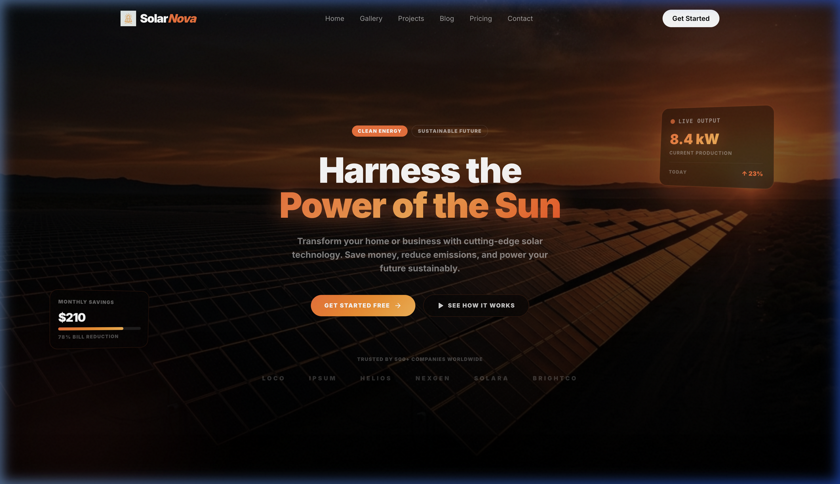 An interactive clean energy dashboard designed for real-time solar monitoring, ROI calculations, and sustainable energy management for enterprises.